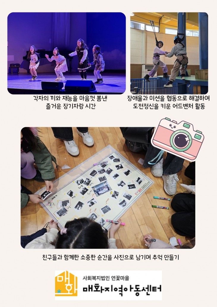 여러 프로그램을 통해 서로 협력하고 도전하며 즐거운 추억을 쌓았습니다.
