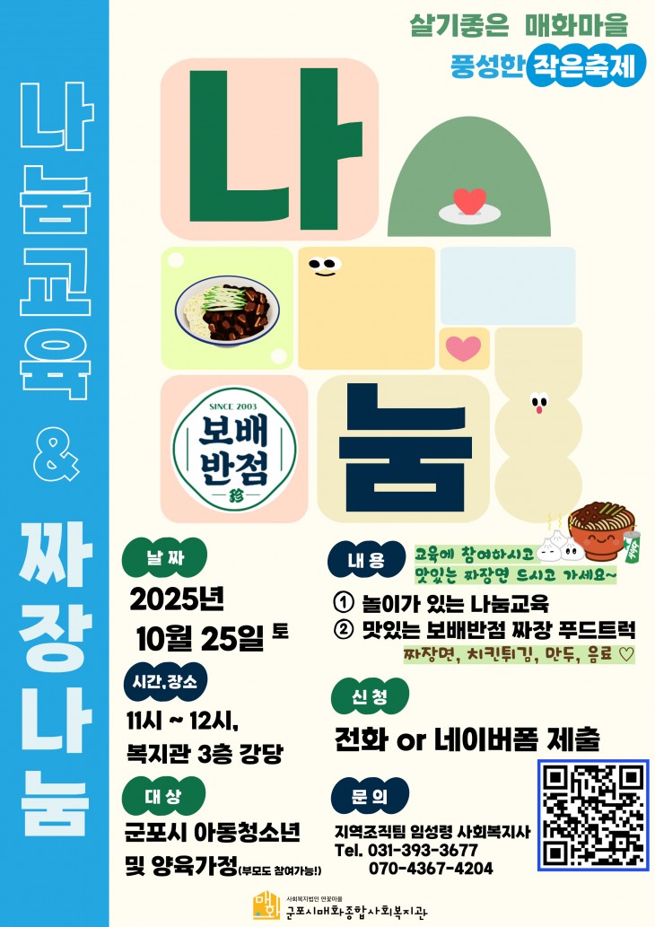 * 내용: 놀이로 배우는 나눔교육, 보배반점 짜장 푸드트럭