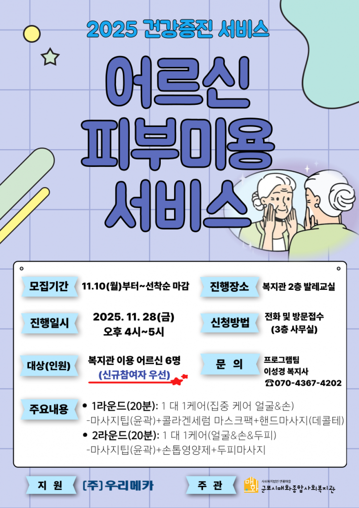 [ 참여자모집] 건강증진-어르신 피부미용 서비스 4차