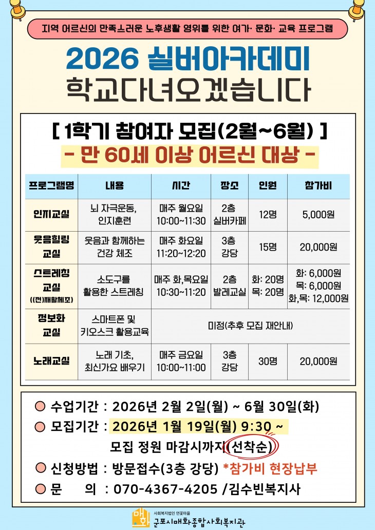 [프로그램팀] 2026년 실버아카데미 '학교다녀오겠습니다' 1학기 참여자 모집