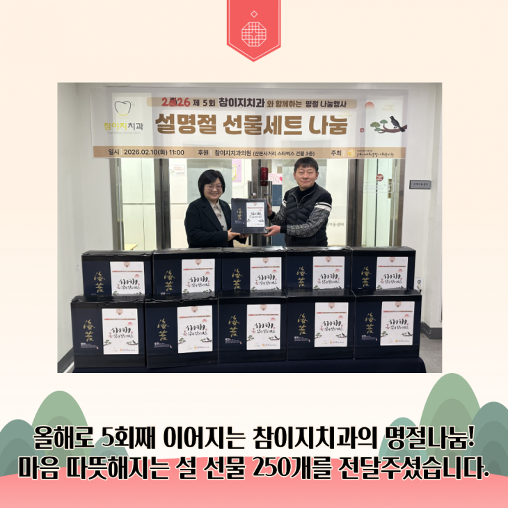 [사례관리팀] 설 명절 나눔행사 진행 페이지 정보 작성자 매화관리자 작성일 26-02-10 14:58 조회 205회 댓글 0건 본문 군포시매화종합사회복지관은 앞으로도 지역 내 민간기관과의 협력을 통해 약계층을 위한 지원을 확대하고, 나눔과 상생의 지역사회 조성을 위해 지속적으로 노력하겠습니다 ^^ 이전글 다음글 목록