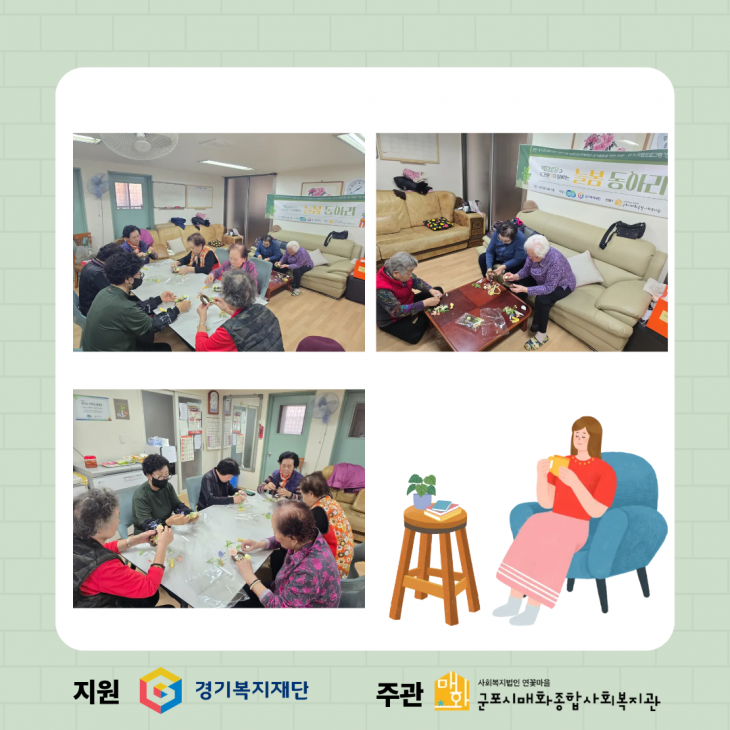 「어르신 즐김터-산본1,2동 행복즐김터」 는 경기도와 경기복지재단이 지원합니다.