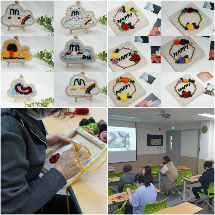 코로나19로 무료한 시간이 지속되면서 삶의 활력을 불러일으키고자 요즘 핫한 공예인 펀치니들을 배워볼 수 있는 기회를 마련하였습니다.