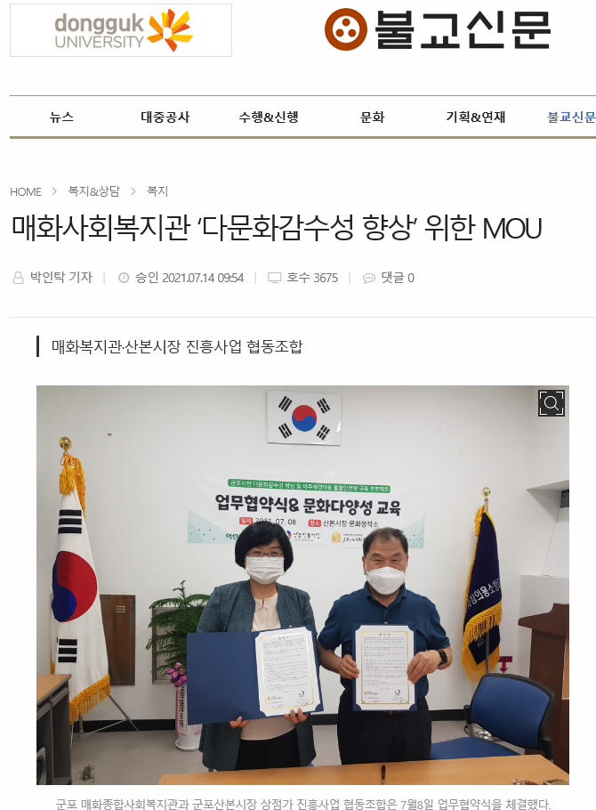[불교신문] 매화사회복지관 '다문화감수성향상' 위한 MOU