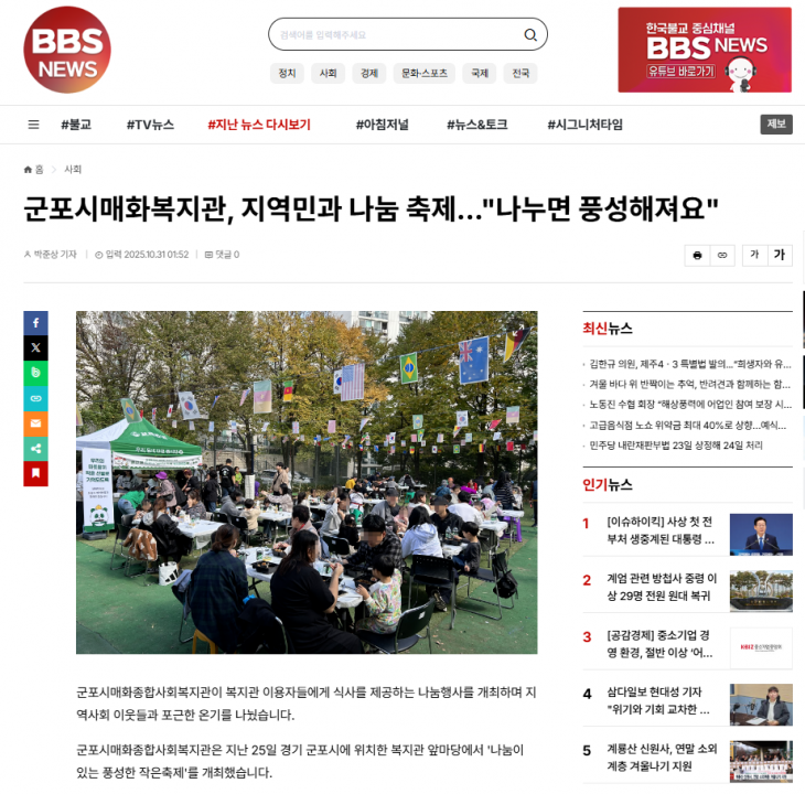 [BBS불교방송]군포시매화복지관, 지역민과 나눔 축제..."나누면 풍성해져요"